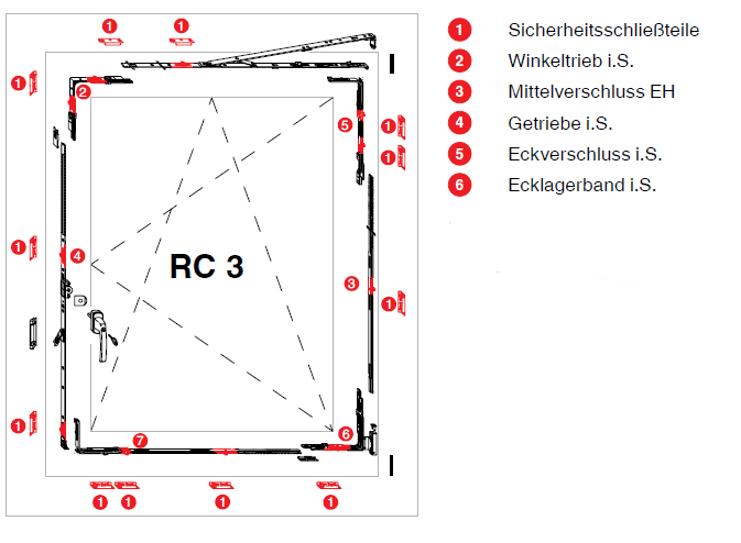 • Eine ausführliche Montageanleitung mit Informationen über umgebendes Mauerwerk, Schrauben und Hinterfütterungen ist jedem Prüfzeugnis angeschlossen und muss eingehalten werden